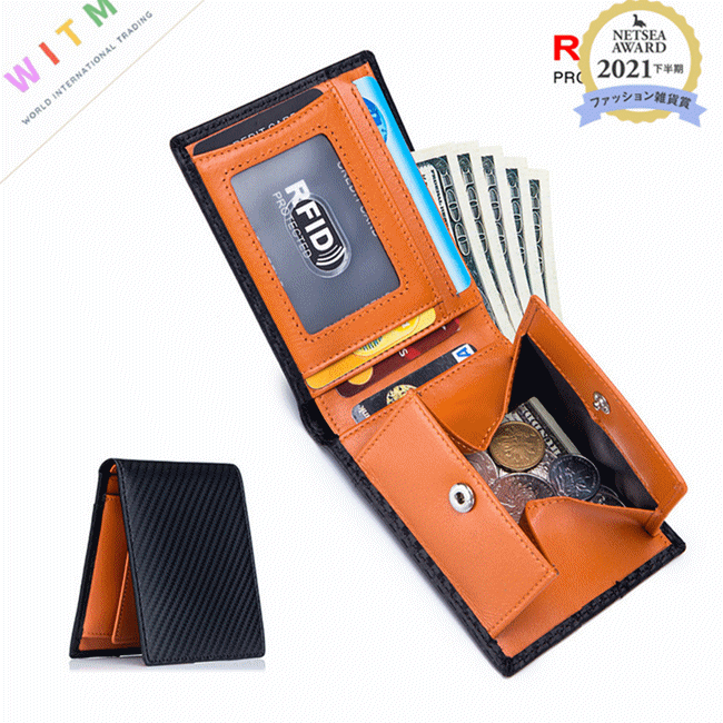 スキミング防止!牛本革 二つ折財布 コインケース カードケース 小銭入れ ウォレット メンズ