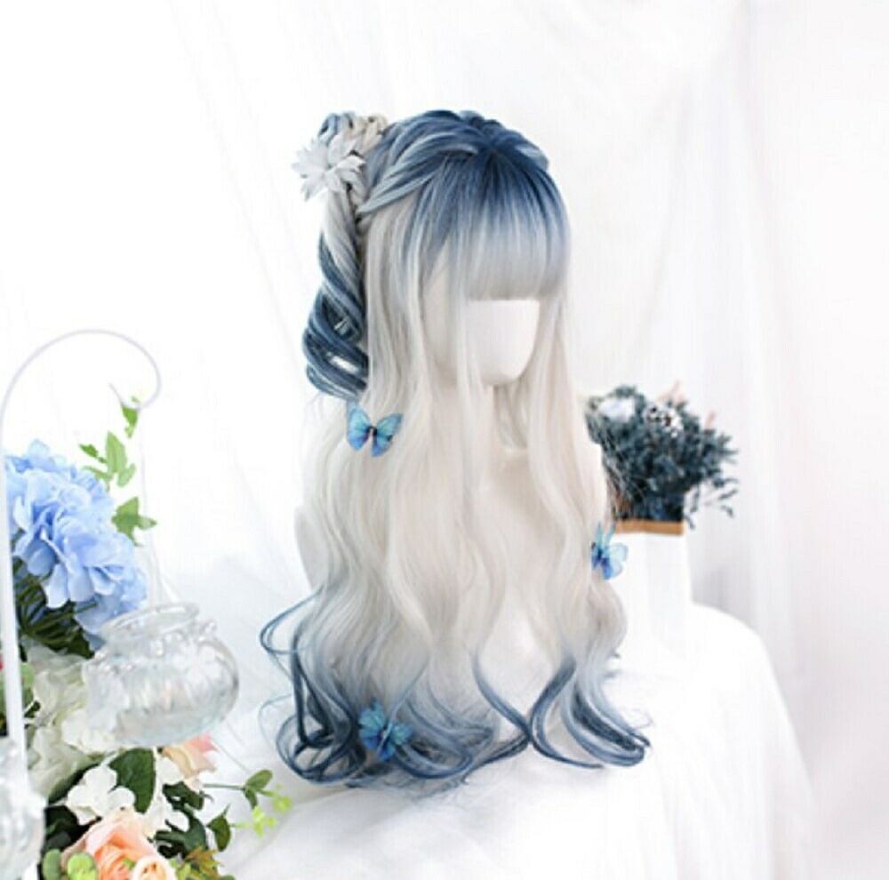 #ウィッグ #ホワイト #ブルー フルウィッグ #自然 #軽量 #ミックス #小顔効果 #ナチュラル #サラツヤ #かわいい #流行り #最新 ベース 病みかわ #夢かわいい ストレート #調整可能 ウイッグ #綺麗 #髪 #コスプレ #仮装 #ハロウィン #%コミケ# 夏コミ #ゆるふわウェーブ #ミディアム #自然なつむじ #ヘアカラー%choco214