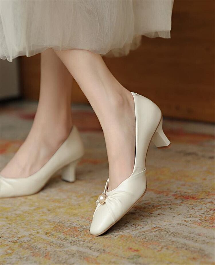 #フレンチ #ハイヒール #蝶結び #レトロ ミッドヒール #百掛け #シックヒール #エレガント#choco214
