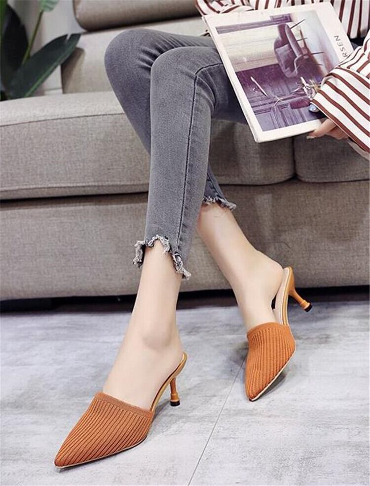 スリッパスチレットヒール オレンジ 靴